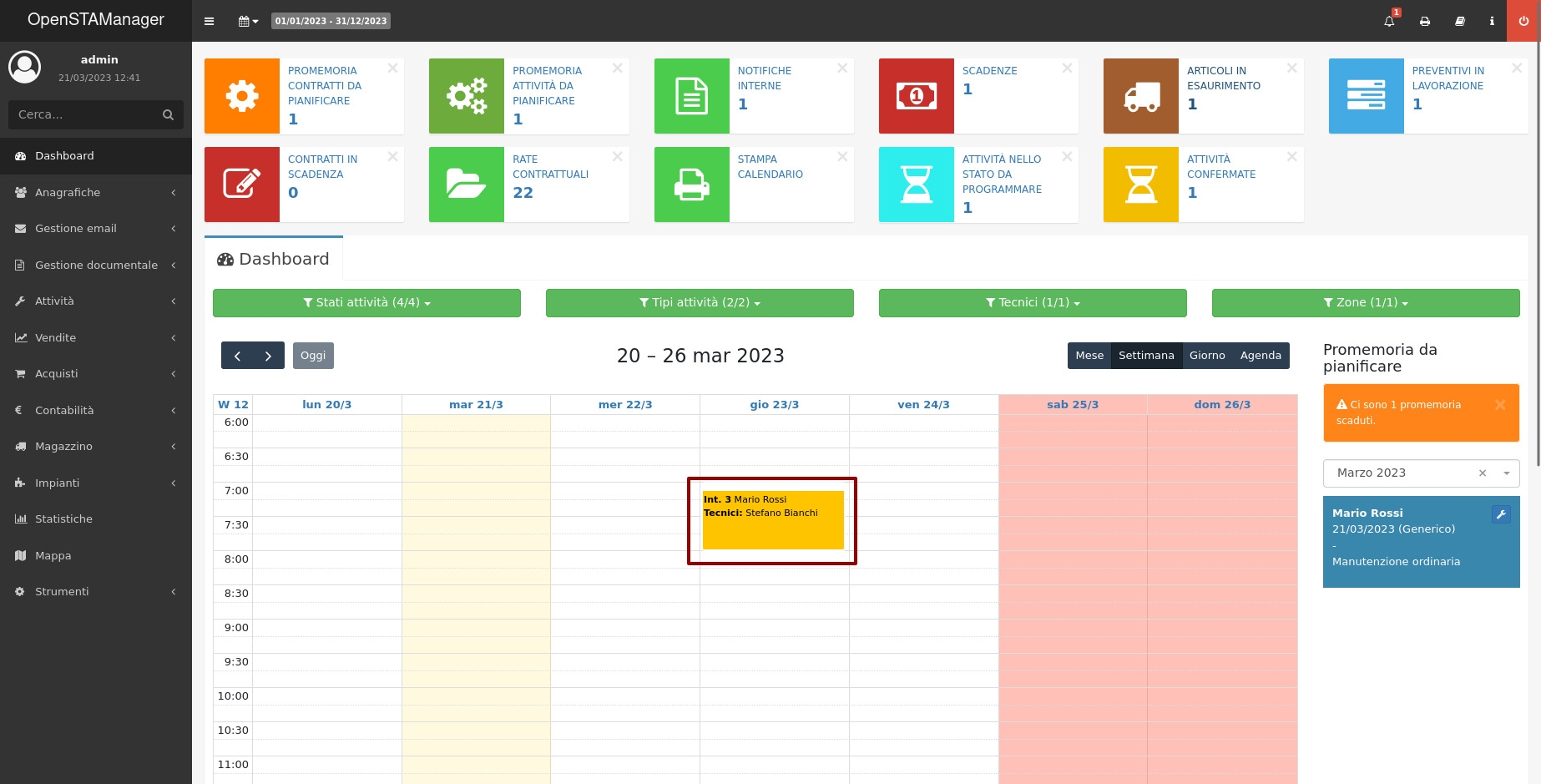 Gli interventi creati in questo modo saranno poi visualizzati a calendario e verranno automaticamente registrati tra le attività: