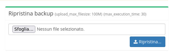Esiste una procedura semplificata di ripristino dei backup, che cerca di risolvere il problema tecnico per utenti con meno esperienza tecnica. Si dovrà cliccare Ripristina nel backup interessato, dalla sezione Backup compressi.