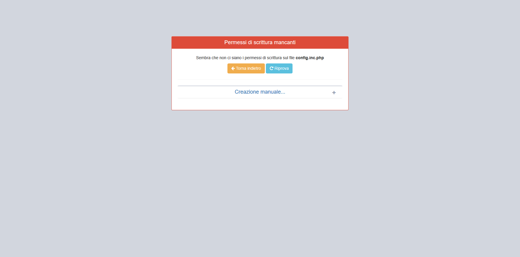 Nel caso la versione PHP non sia compatibile, viene mostrato immediatamente un messaggio informativo a riguardo.