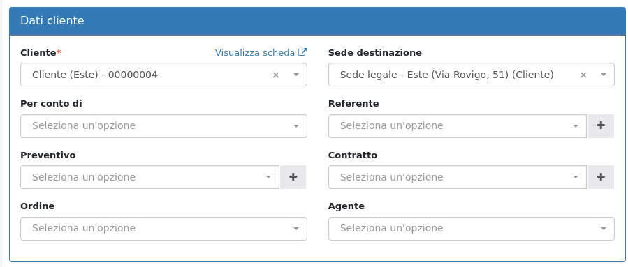 Il primo raggruppamento di informazioni consiste nell'insieme dei dati relativi al cliente selezionato.