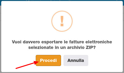 Il gestionale chiederà quindi la conferma di procedere all'esportazione in formato ZIP dell'archivio di PDF delle fatture di vendita selezionate.