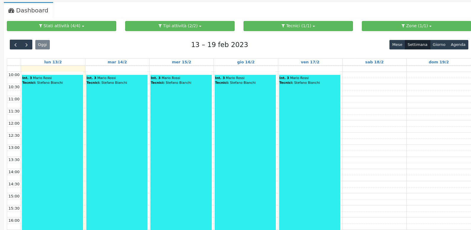 In questa sezione è possibile aggiungere, duplicare, modificare ed eliminare le ore lavorative dei vari tecnici.