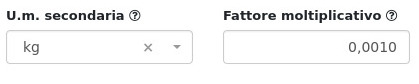 Esempio: Nel caso di attività che acquistano al kg e rivendono al grammo, si dovrà impostare come unità di misura primaria il g e secondaria il kg, con relativo fattore moltiplicativo.