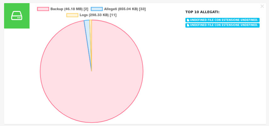 In questo widget è possibile visualizzare lo spazio occupato da Backup, Allegati e Logs.