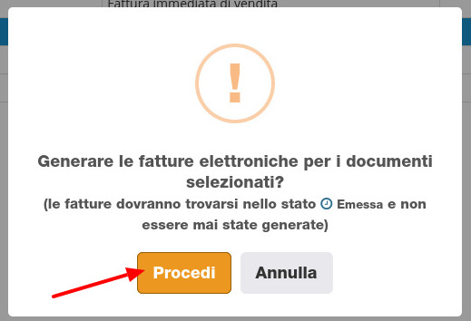 Il gestionale chiederà quindi la conferma a procedere alla generazione delle fatture elettroniche.