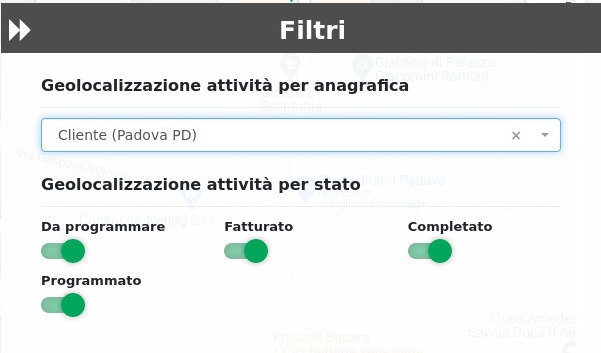 Accedendo ora al modulo mappa e sarà possibile vedere le posizioni delle diverse attività sulla mappa.
