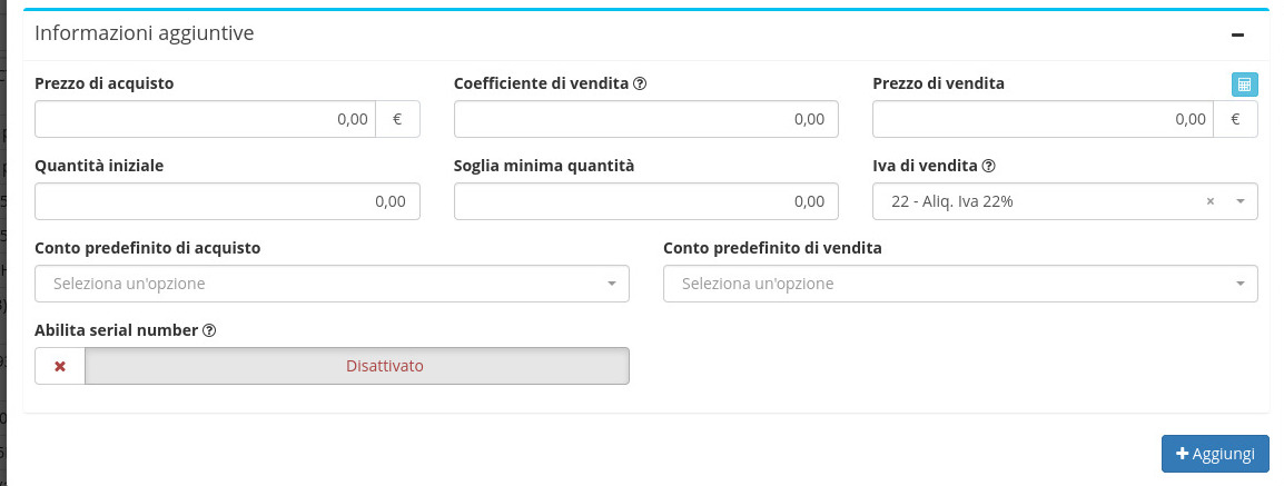 Espandendo Informazioni aggiuntive è inoltre possibile inserire: