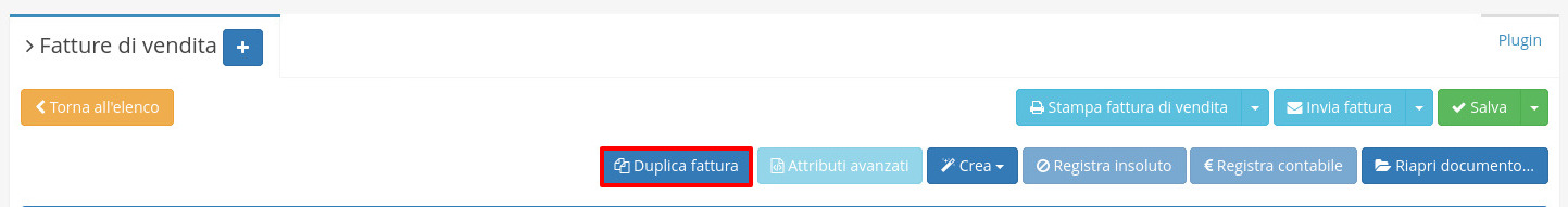 Dalla schermata di dettaglio di una fattura di vendita è possibile procedere alla sua duplicazione cliccando su duplica fattura.