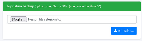 Esiste una procedura semplificata di ripristino dei backup, che cerca di risolvere il problema tecnico per utenti con meno esperienza tecnica. Si dovrà cliccare Ripristina nel backup interessato, dalla sezione Backup compressi.