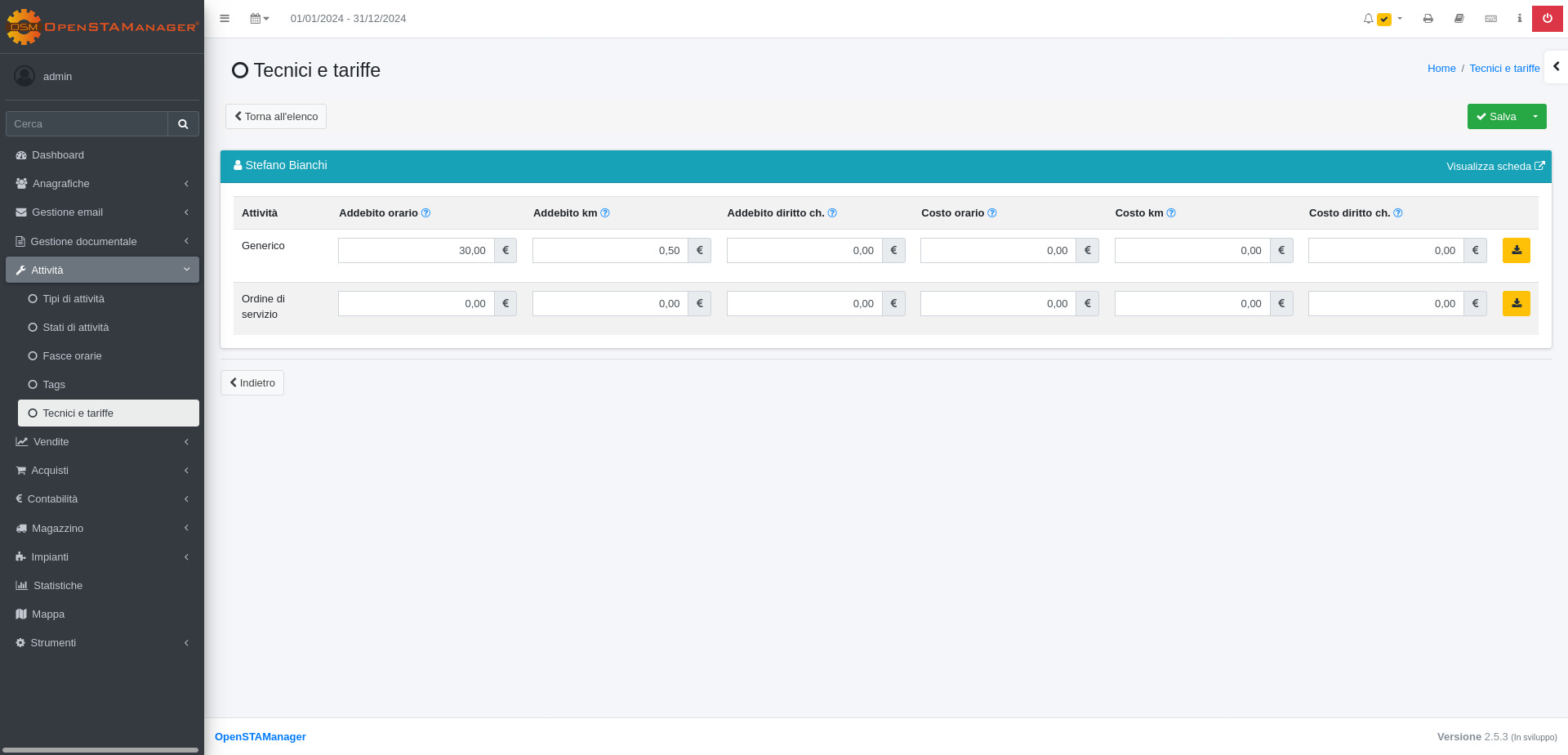 Il modulo **Tecnici e tariffe** offre la possibilità di personalizzare le *tariffe* di uno o più tecnici. In questo modo ogni tecnico avrà la propria tariffa.