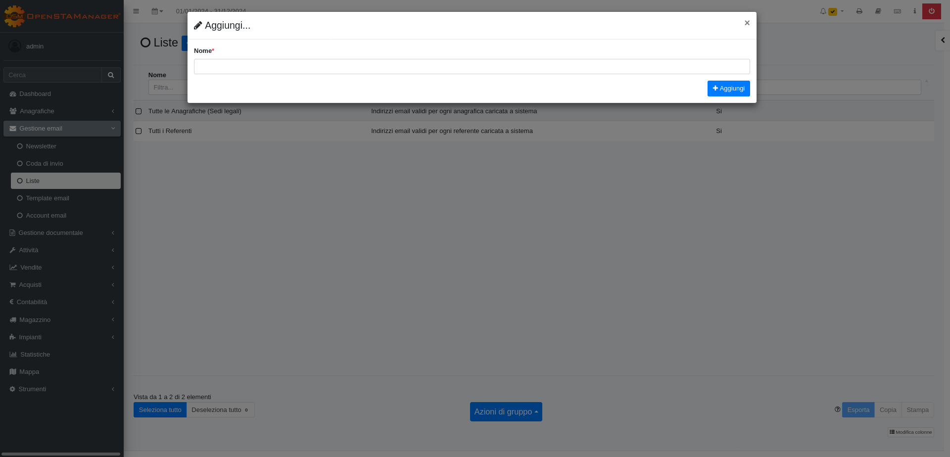 Il modulo Liste permette all’azienda di creare dei gruppi di destinatari da utilizzare nell' invio delle email.