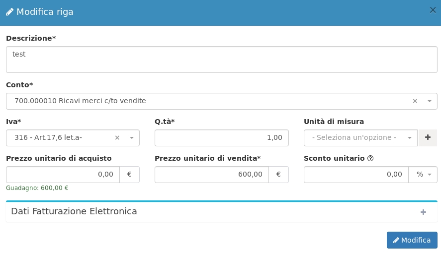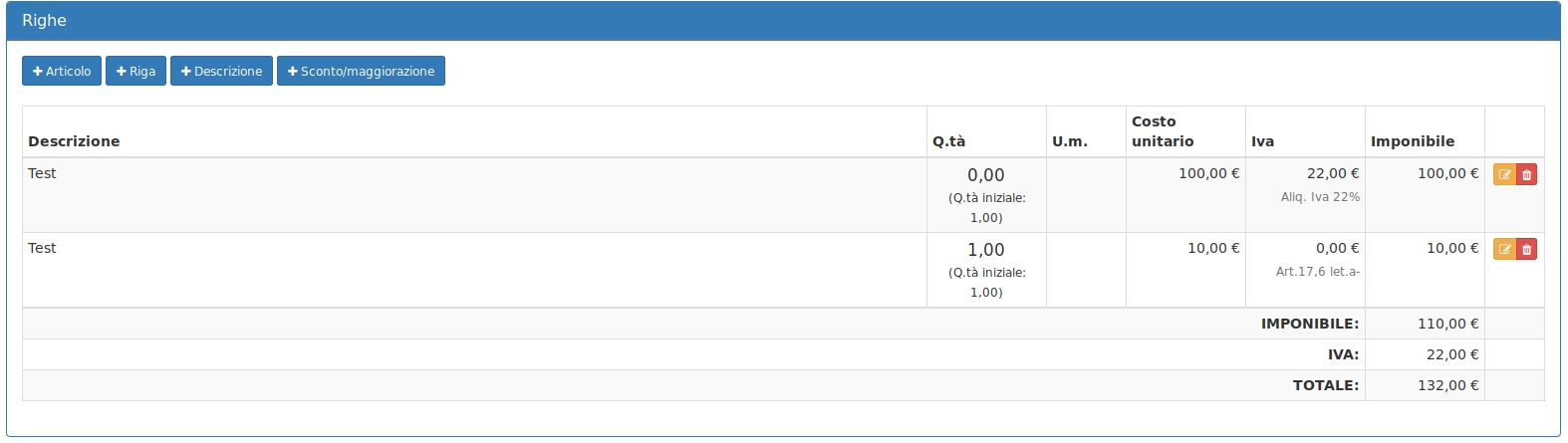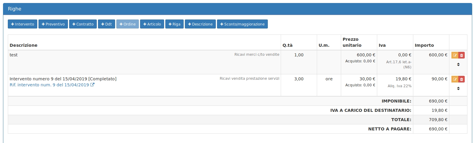 Così facendo nella tabella Righe il Totale sarà comprensivo di IVA, mentre il Netto a pagare sarà IVA esclusa perché l'imposta relativa alla transizione sarà a carico della pubblica amministrazione.