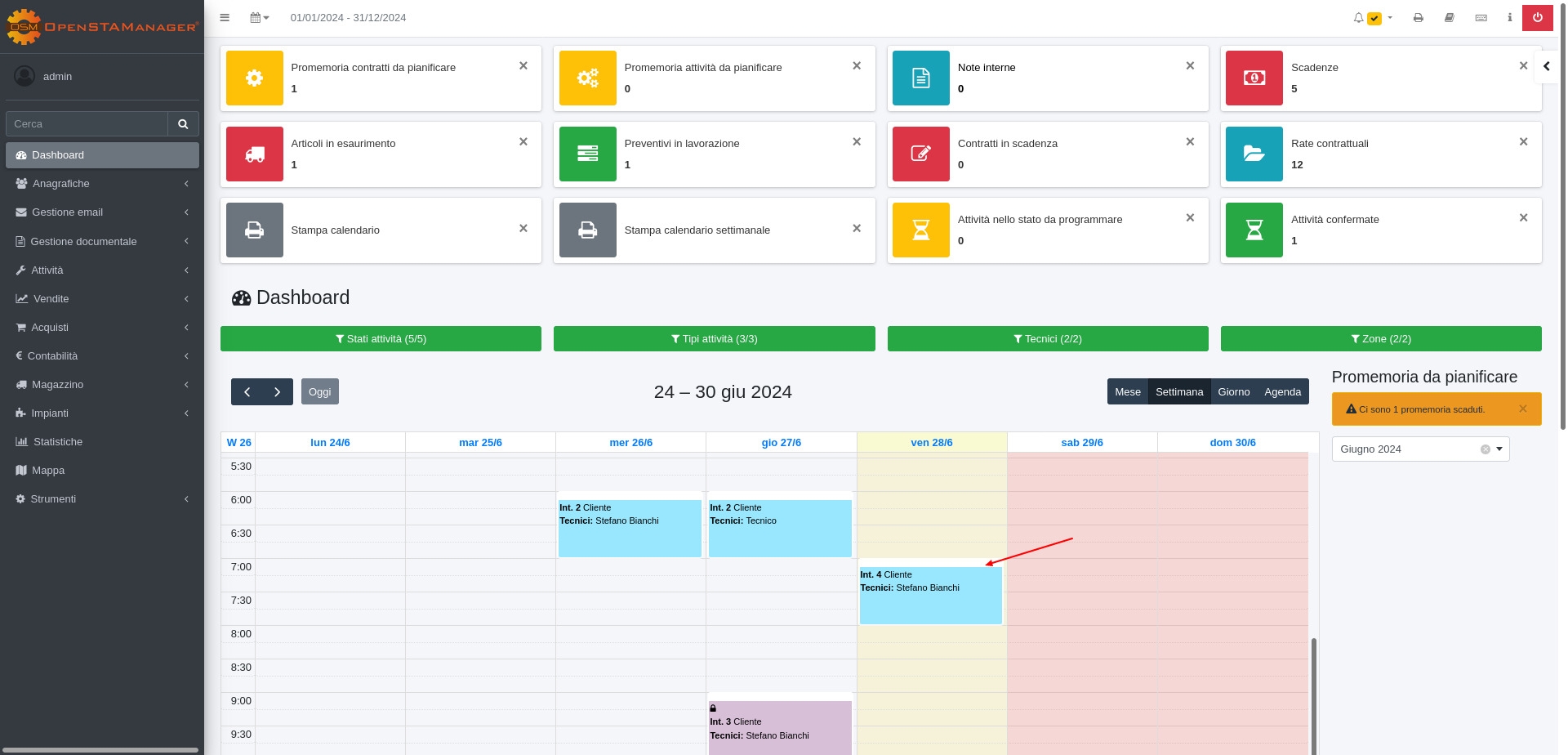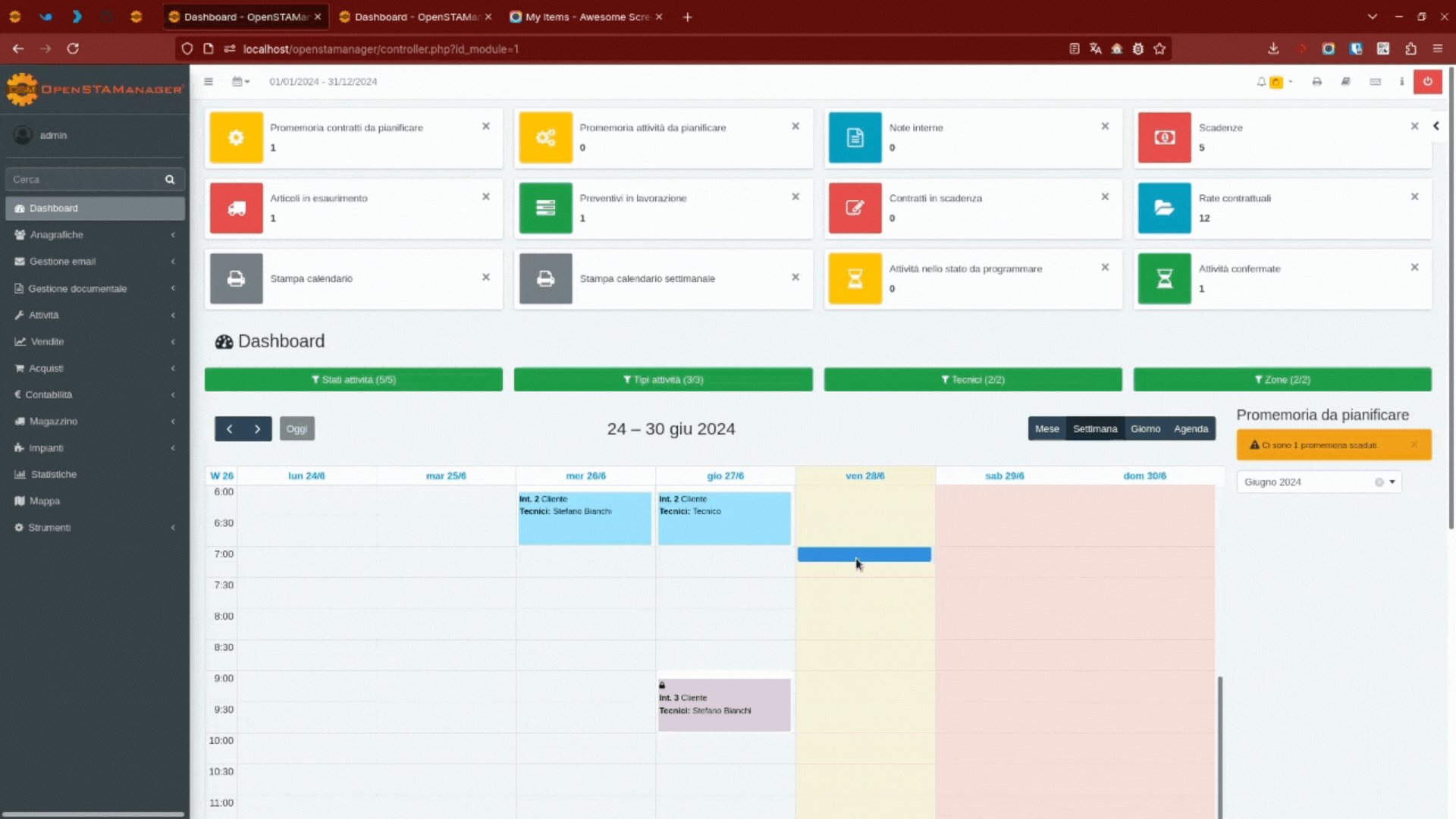 Gli interventi creati in questo modo saranno poi visualizzati a calendario e verranno automaticamente registrati tra le attività: