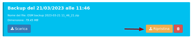 Esiste una procedura semplificata di ripristino dei backup, che cerca di risolvere il problema tecnico per utenti con meno esperienza tecnica. Si dovrà cliccare Ripristina nel backup interessato, dalla sezione Backup compressi.