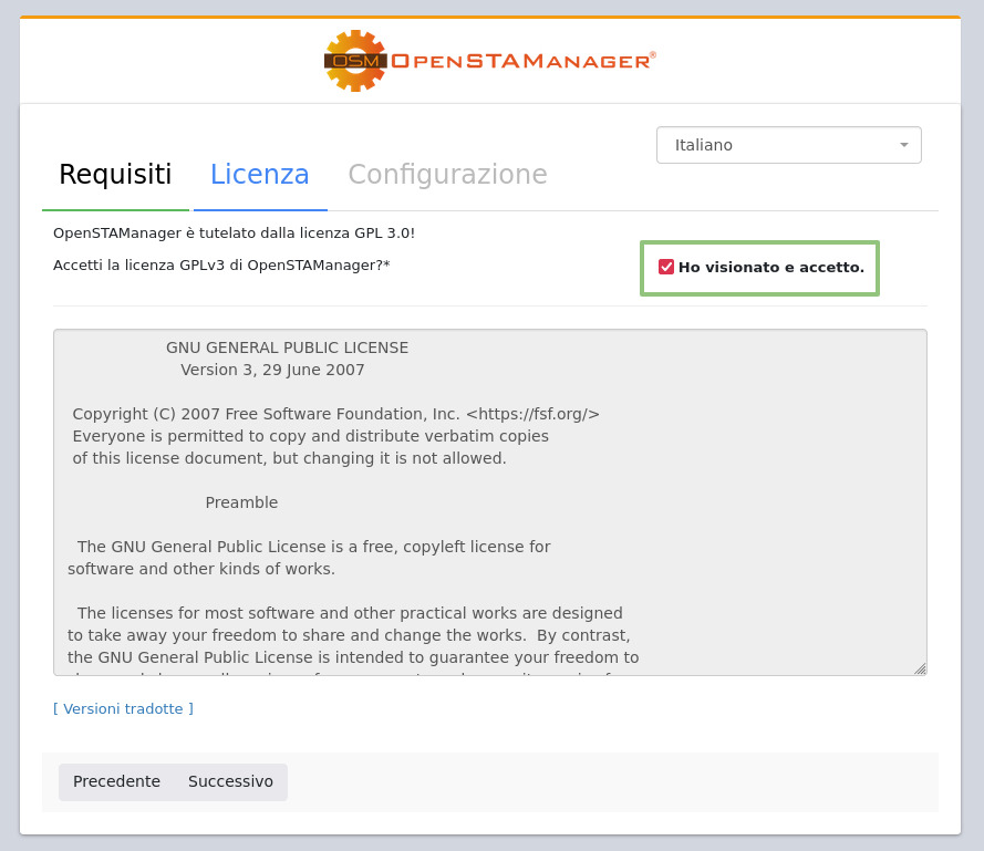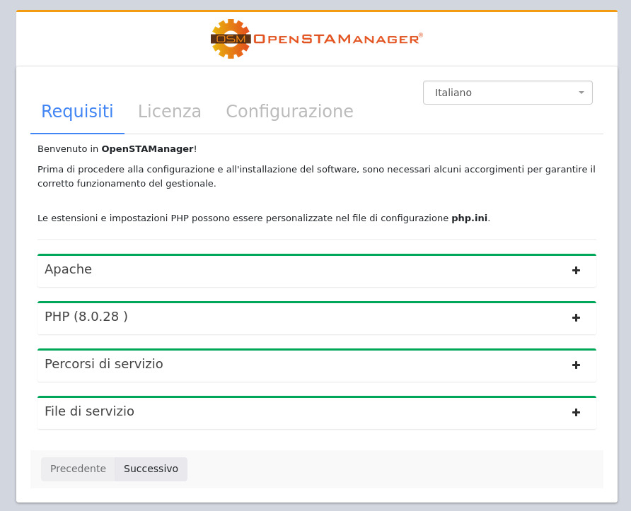 Per procedere all'installazione di OpenSTAManager è necessario seguire i seguenti punti: