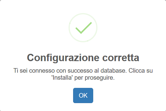 Se le credenziali inserite sono corrette, dopo aver cliccato su Installa si verrà reindirizzati alla procedura automatica di installazione del database.
