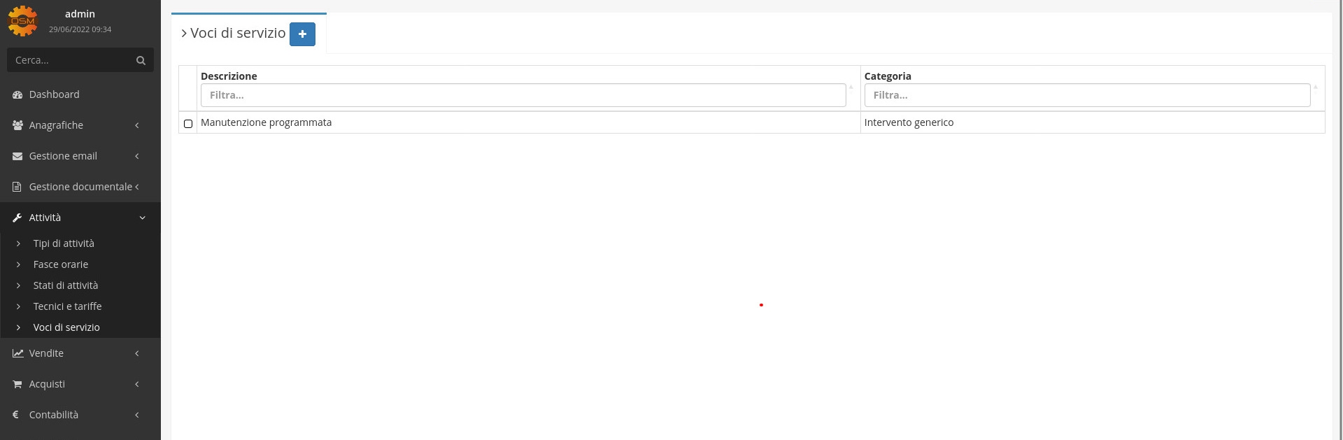 Per creare una nuova Voce di servizio si dovrà cliccare sul tasto (+).