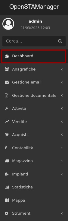 Dashboard è il modulo principale su cui si apre di default OpenSTAManager.