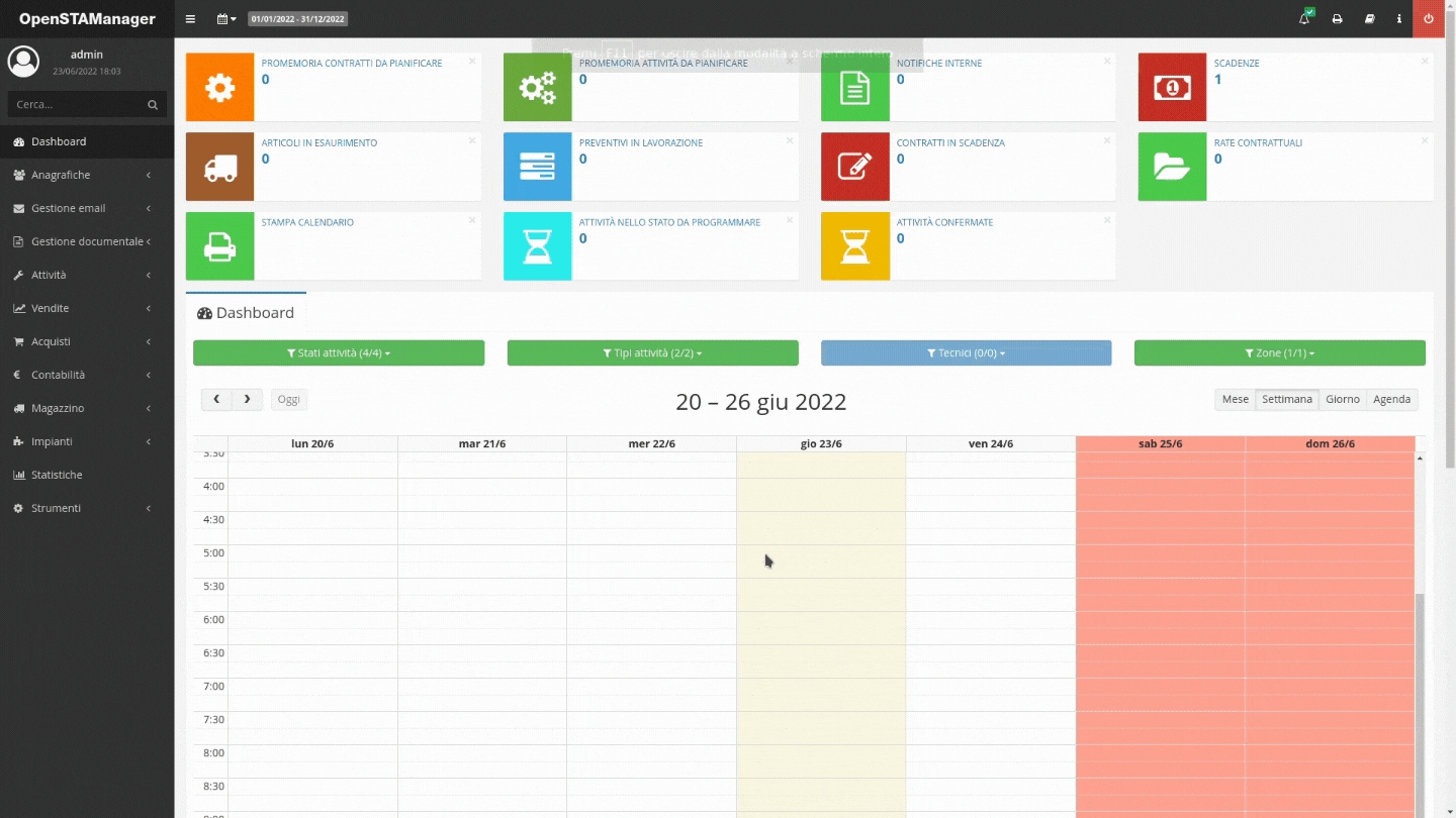 Gli interventi creati in questo modo saranno poi visualizzati a calendario e verranno automaticamente registrati tra le attività: