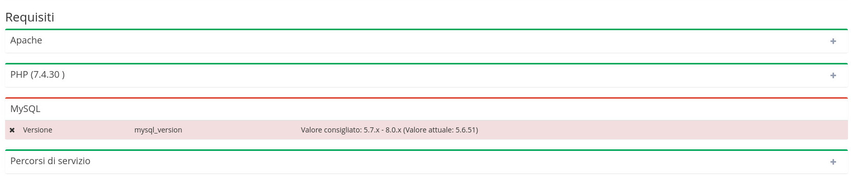 Questa sezione mostra che requisiti per il corretto funzionamento di OpenSTAManager vengono soddisfatti e quali no.
