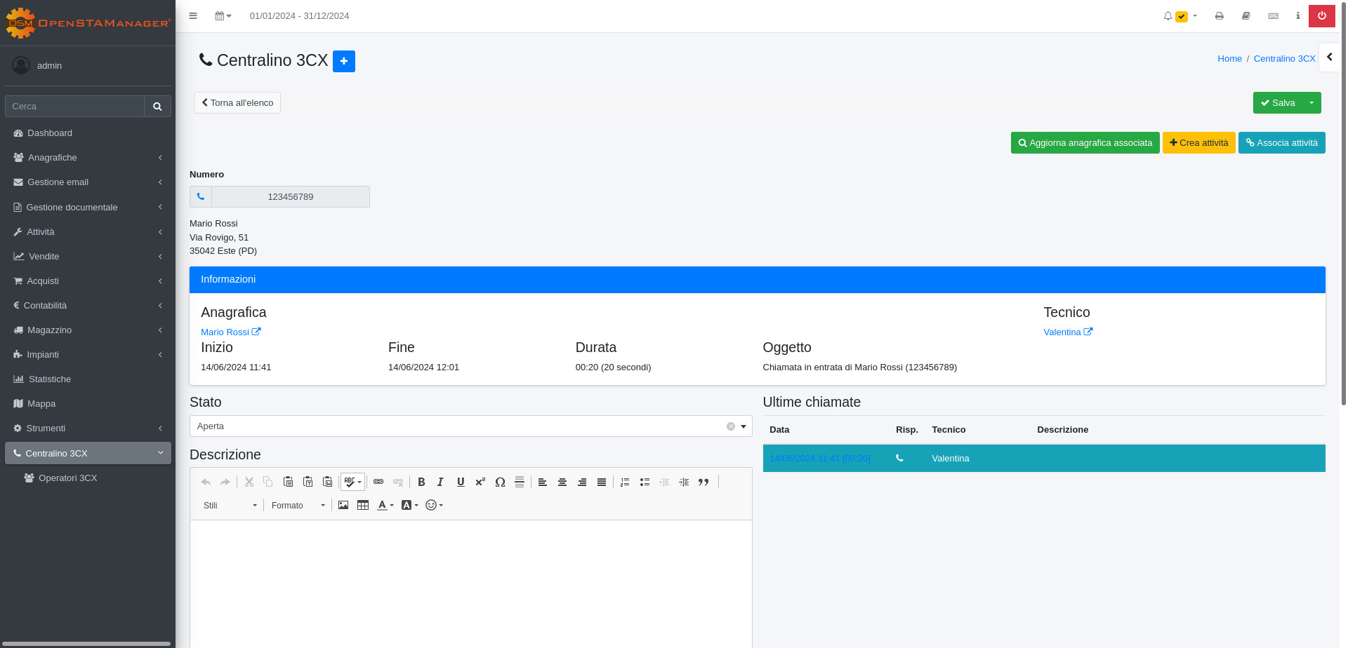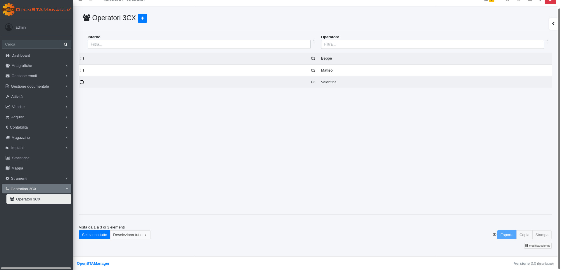 Il modulo Centralino 3CX è dedicato alla gestione delle operazioni di integrazione del gestionale OpenSTAManager con il sistema di centralini 3CX, al fine di registrare le chiamate e fornire una consultazione rapida delle informazioni disponibili.