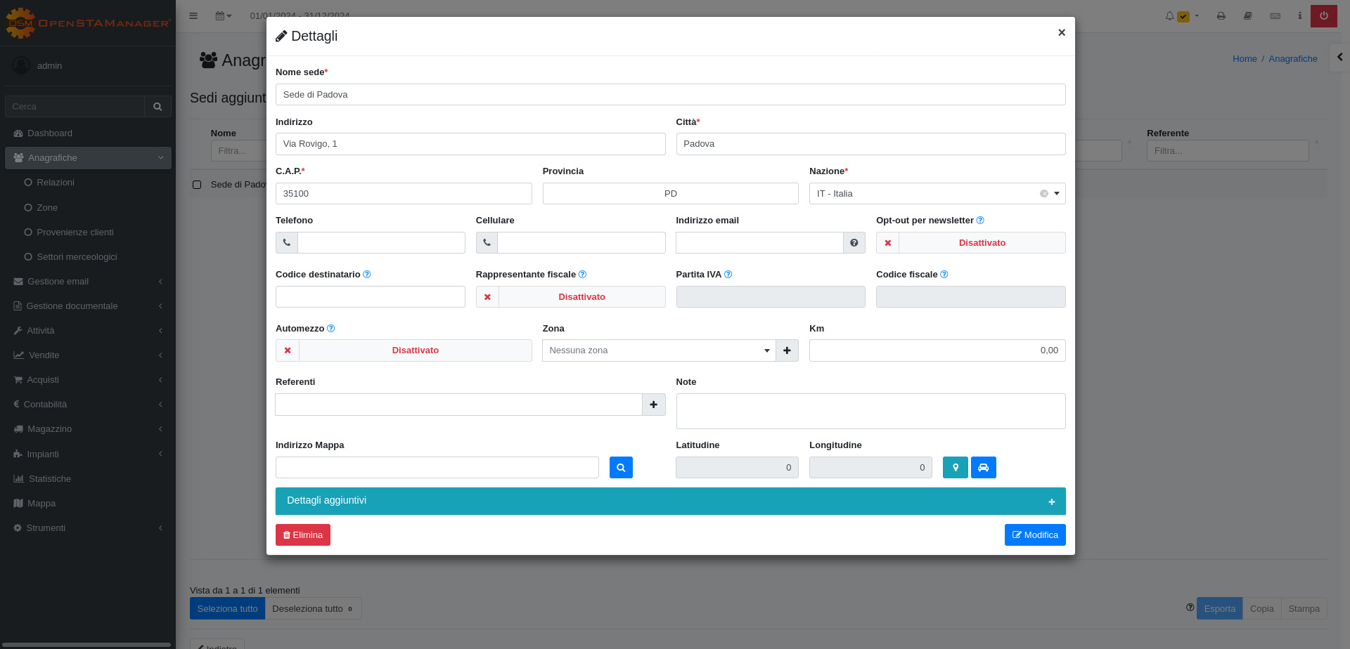 Guida al plugin Sedi in OpenSTAManager