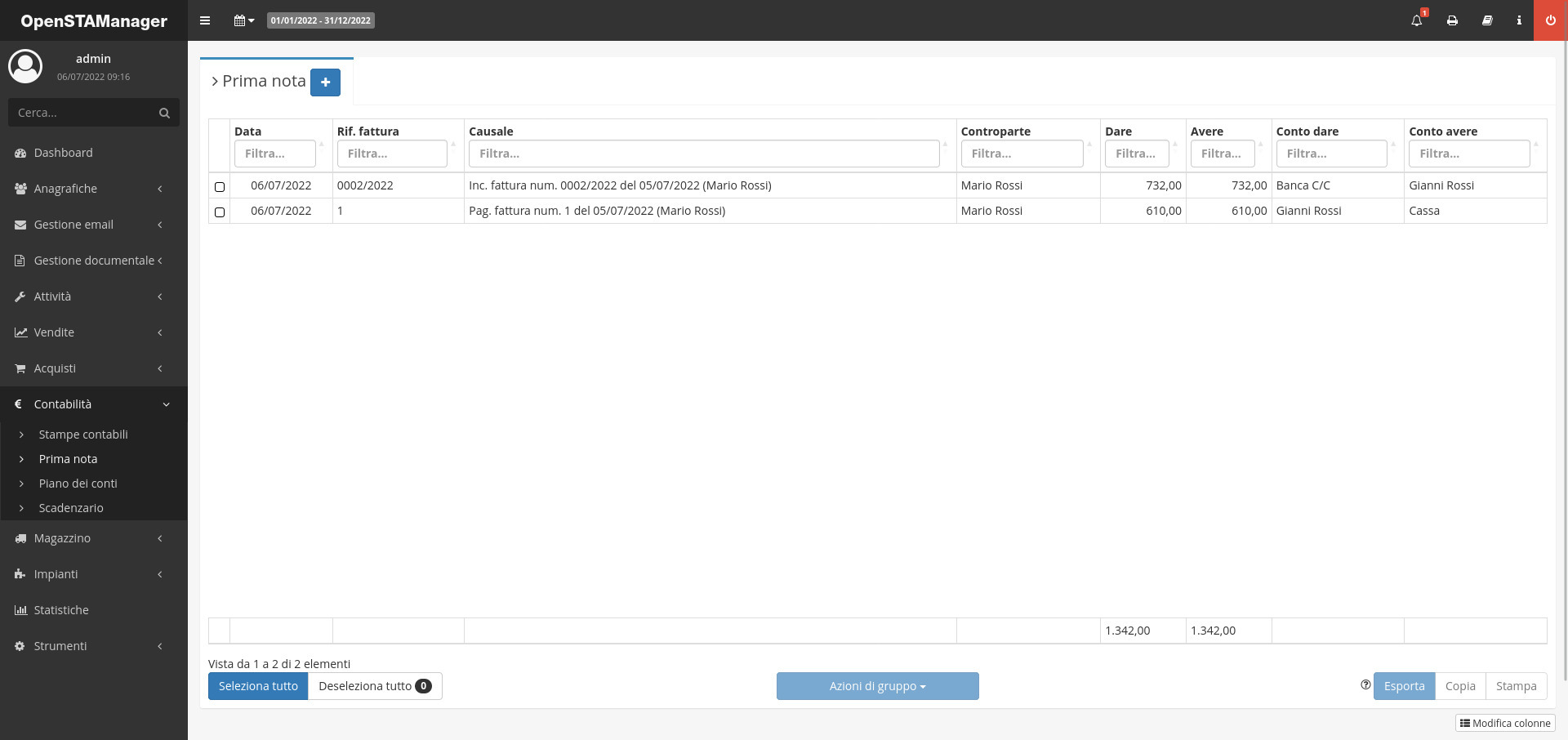 Come gestire i movimenti in Prima nota con OpenSTAManager