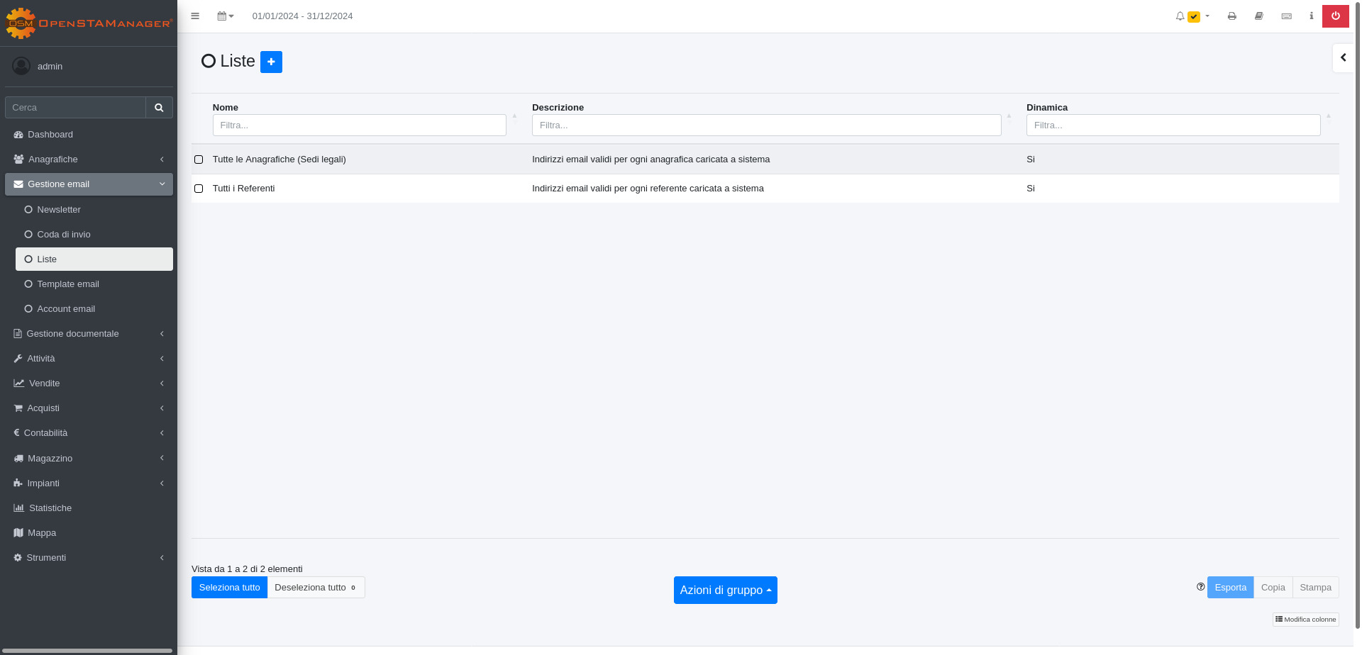 Il modulo Liste permette all’azienda di creare dei gruppi di destinatari da utilizzare nell' invio delle email.
