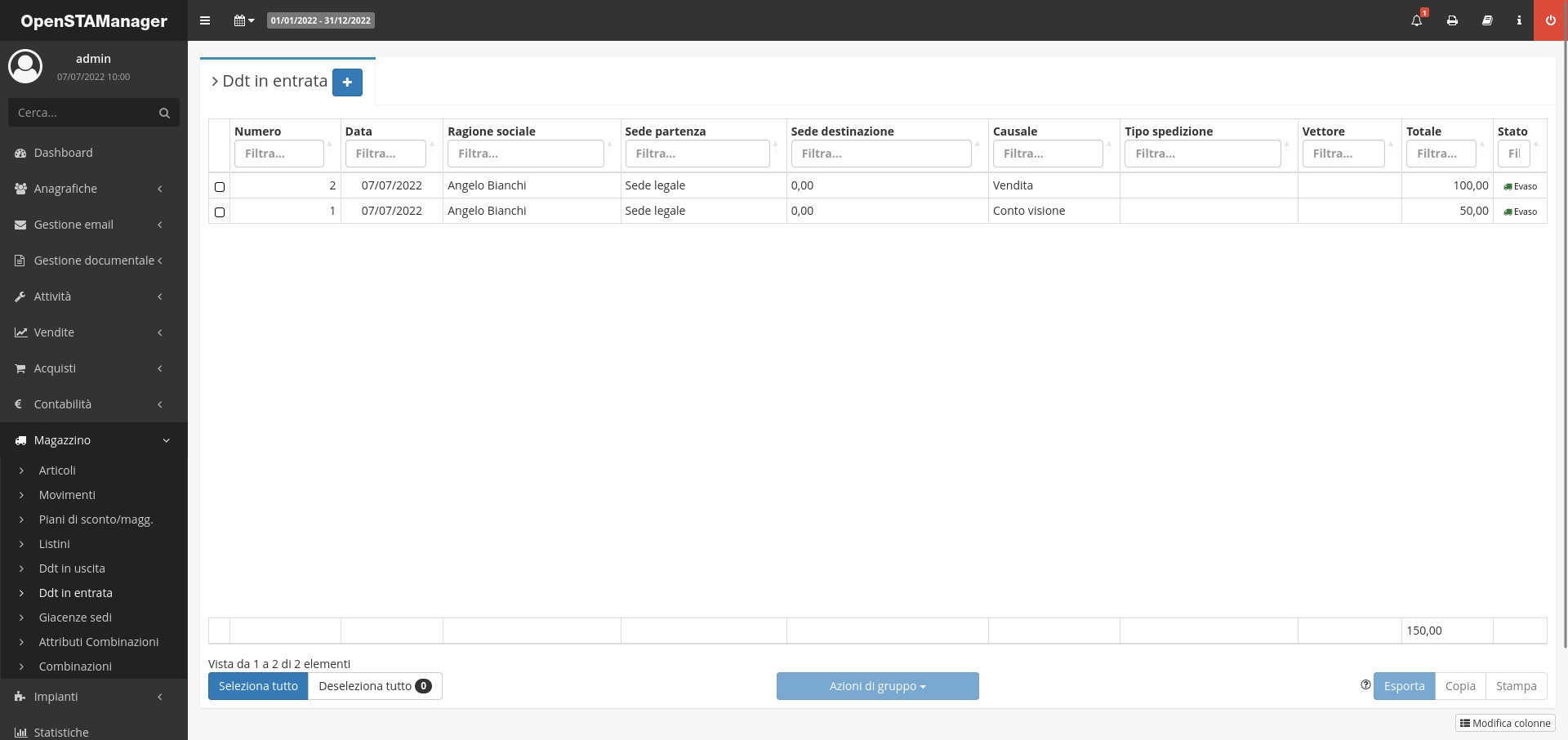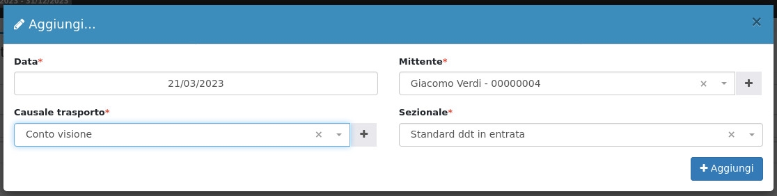 Per creare un nuovo DDT in entrata si dovrà cliccare sul tasto (+).