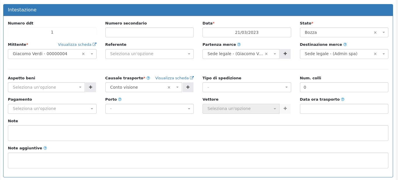 Andranno qui inserite le informazioni relative al nuovo DDT: