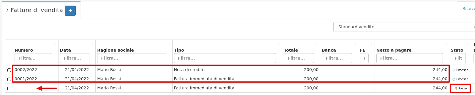 Verrà così creata in bozza una copia della Fattura di vendita originale dove andare ad apportare le necessarie modifiche e che, una volta emessa, avrà numerazione progressiva.