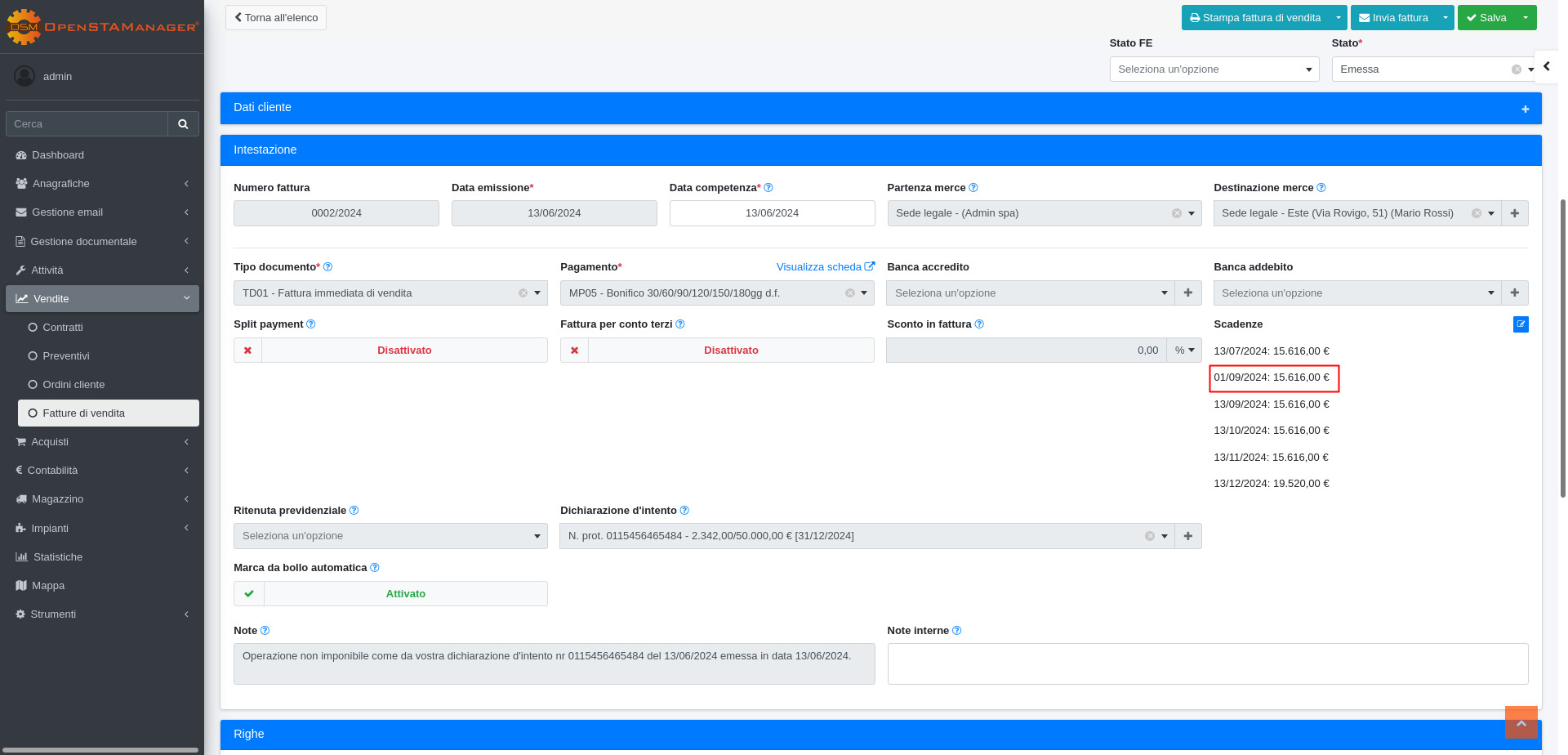 In questo modo, andando ad esempio a creare una fattura che avrebbe una scadenza nel mese di Agosto, si potrà notare la scadenza programmata invece per il giorno 1 del mese successivo: