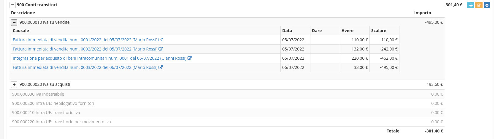 Tutti i Conti Patrimoniali passivi vengono aperti con saldo uguale a quello dell’anno precedente, e girati a Bilancio di Apertura.