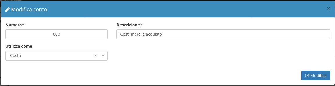 Per modificare un conto si deve cliccare sul tasto
