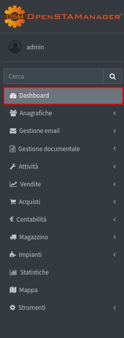 Dashboard è il modulo principale su cui si apre di default OpenSTAManager.