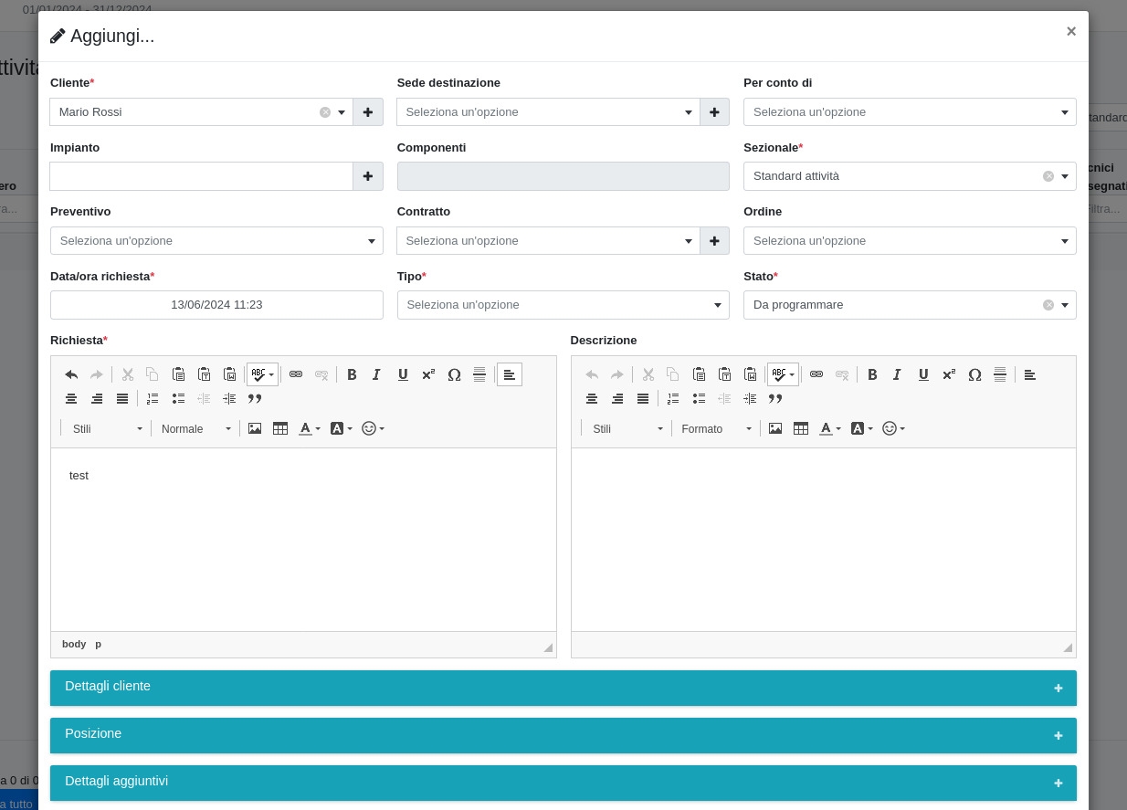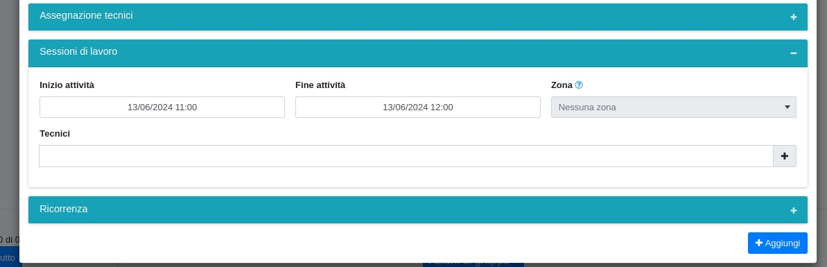 Creando un intervento in questo modo si hanno a disposizione una serie di campi obbligatori da compilare, quali: