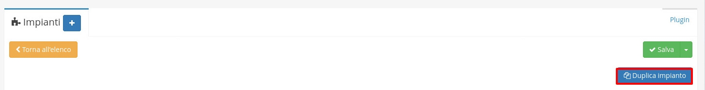 Dalla schermata di dettaglio di un impianto è possibile procedere alla sua duplicazione cliccando su Duplica impianto.
