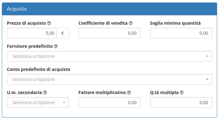 Aggiungendo nella scheda articolo un'unità di misura secondaria e il relativo moltiplicatore è possibile visualizzare unità di misura diverse negli ordini fornitore, qualora si dovessero trattare quantità da convertire per la vendita al dettaglio.