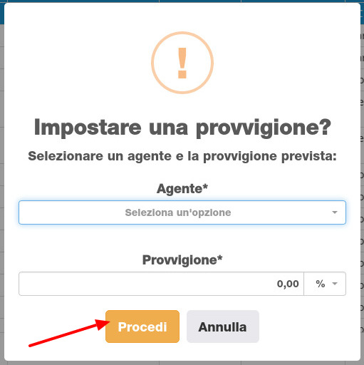 Il gestionale chiederà ora l'agente e la provvigione da applicare.
