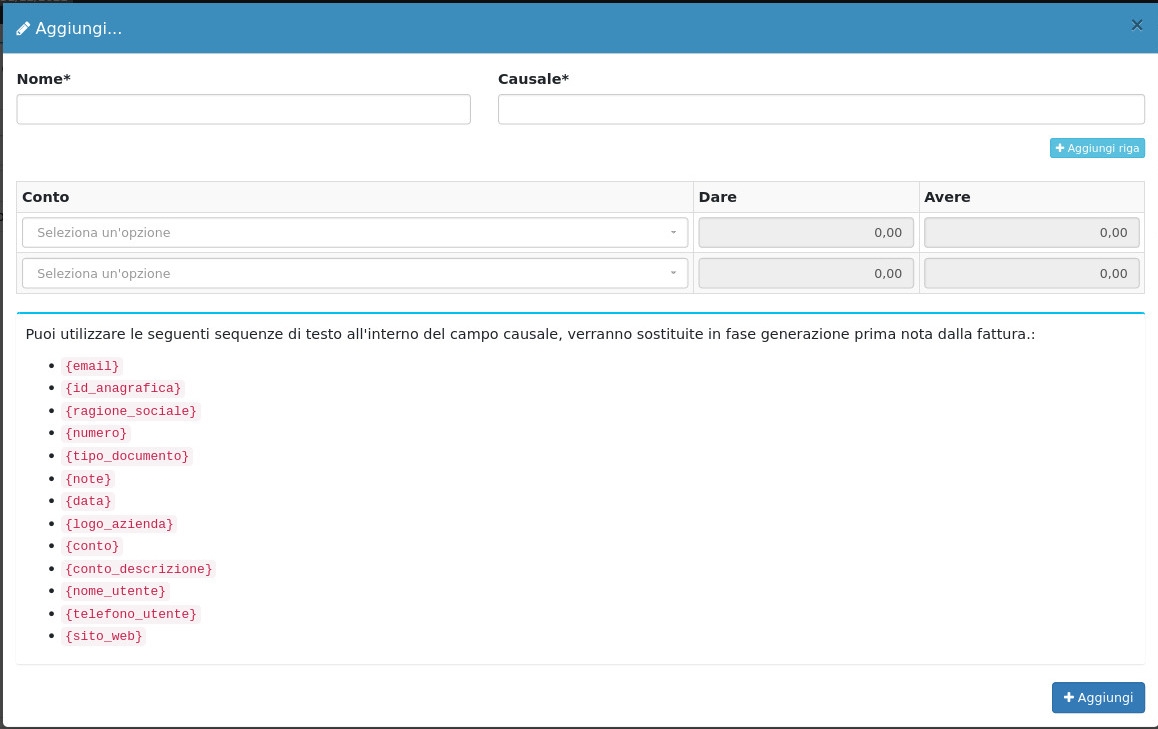 Per creare un nuovo modello di prima nota si dovrà cliccare il tasto (+).