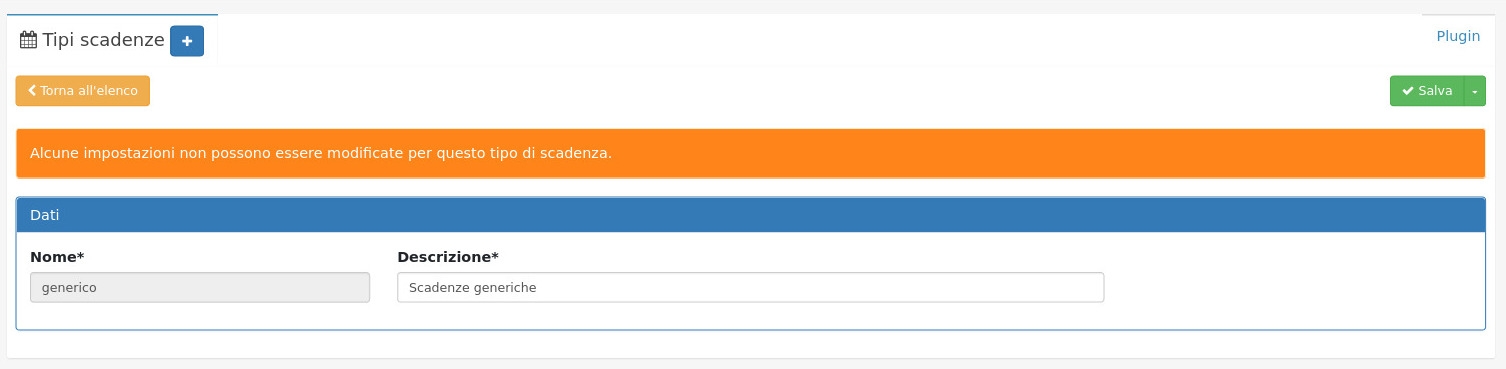 Per creare un nuovo tipo di scadenza si dovrà cliccare sul tasto (+).