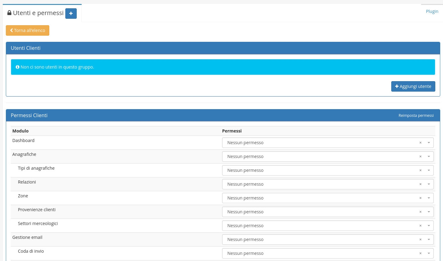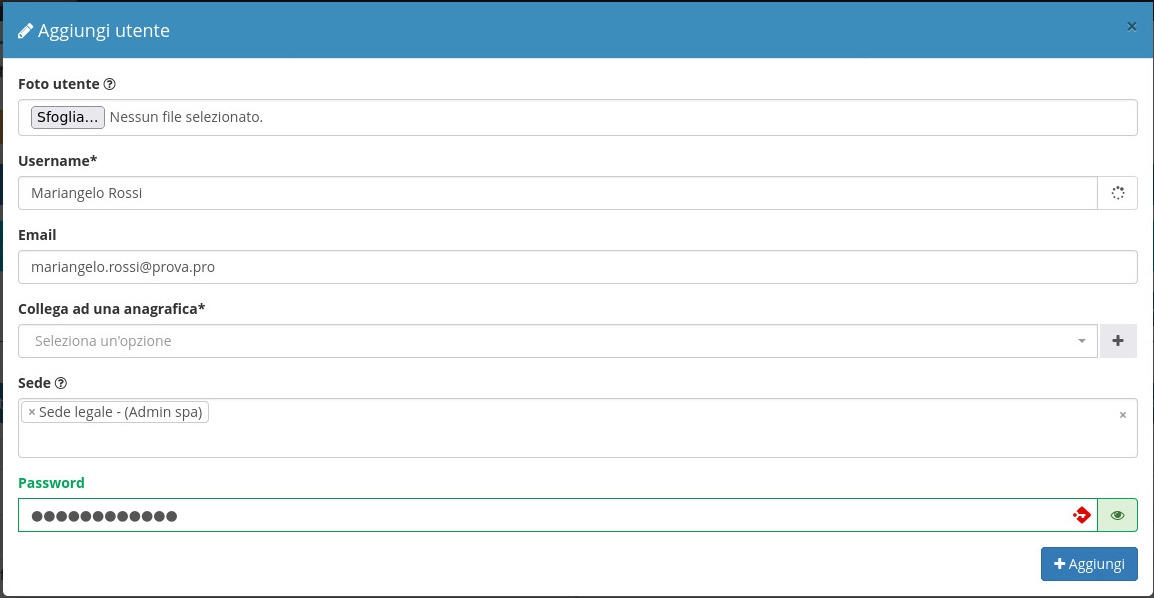 Per creare un nuovo utente a cui assegnare la tipologia utenti appena creata, si dovrà cliccare su Aggiungi utente.