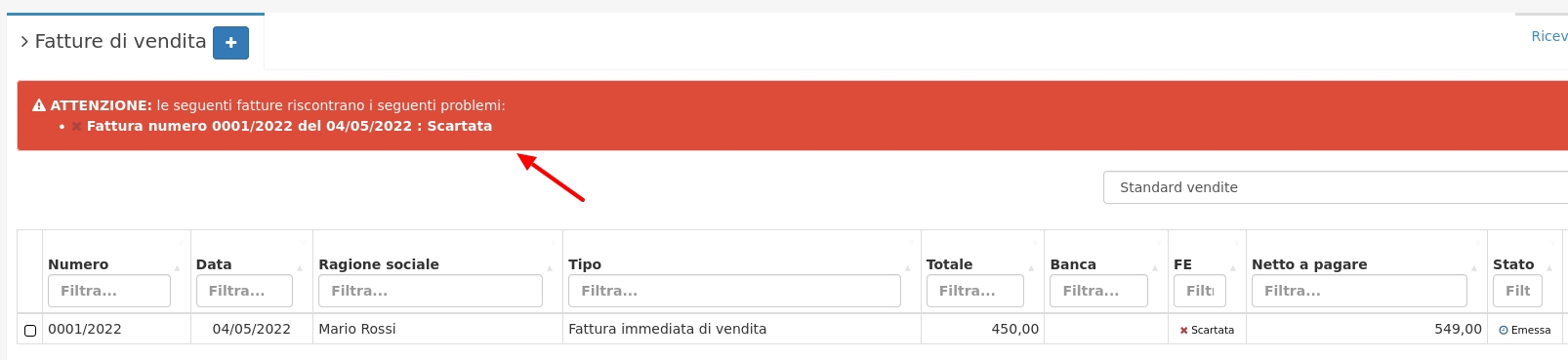 Verranno notificare anche le fatture che invece risulteranno scartate dallo SDI e andranno quindi corrette e riemesse.