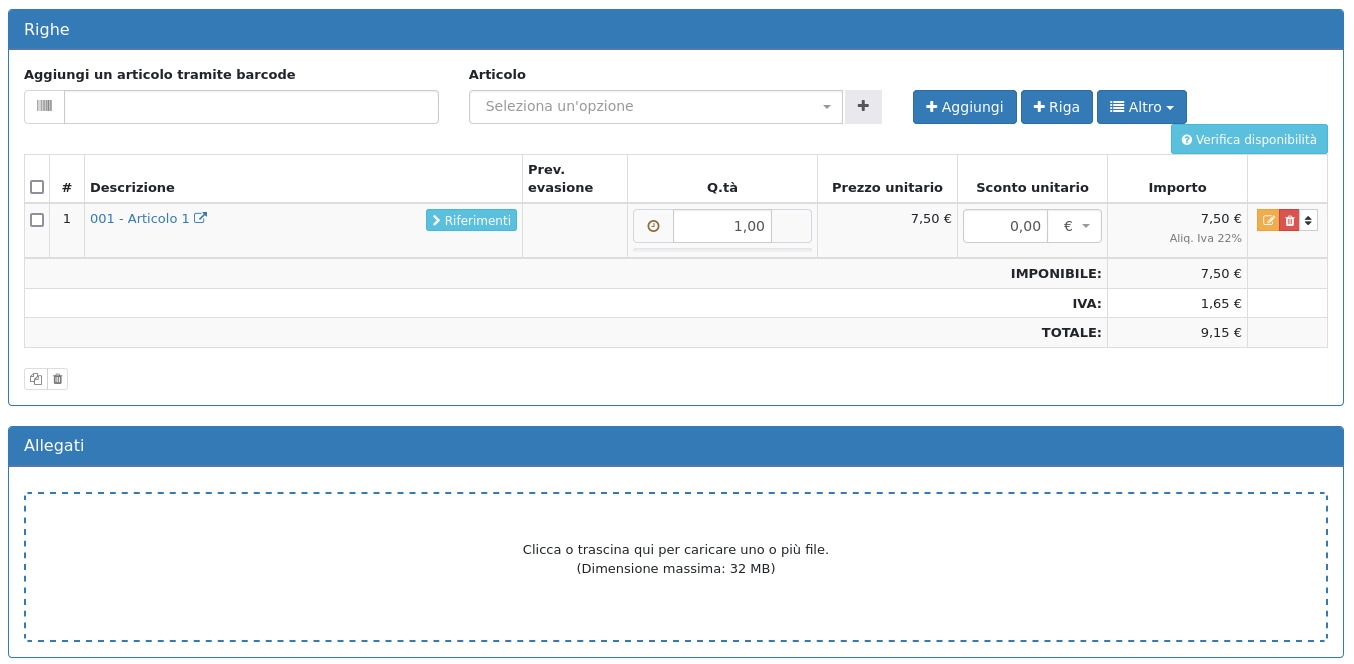 Cliccando su Aggiungi si procede alla creazione di un ordine cliente.