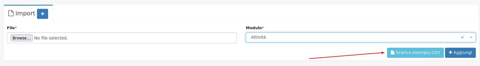 È possibile importare le attività in maniera massiva tramite il caricamento di un file CSV.