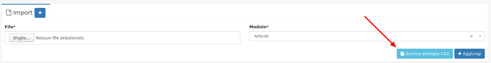 Dopo aver selezionato il modulo sarà visibile un nuovo pulsante nella schermata "Scarica esempio CSV".