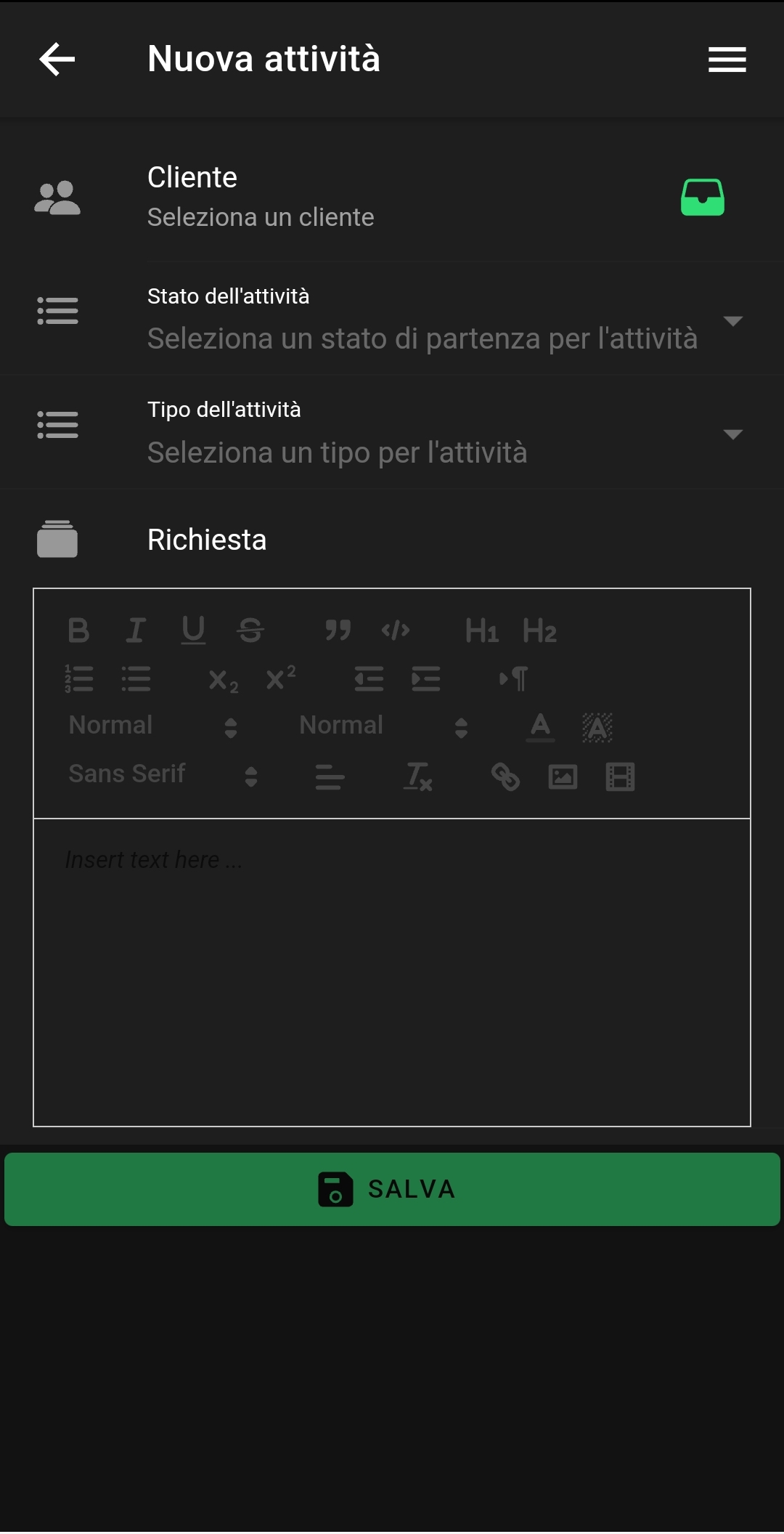Cliccando sul tasto + è possibile inserire una nuova attività: