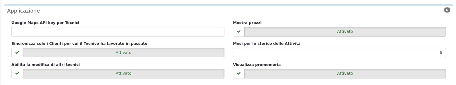 Mostra i pezzi nell'app ai tecnici / Nascondi i prezzi ai tecnici