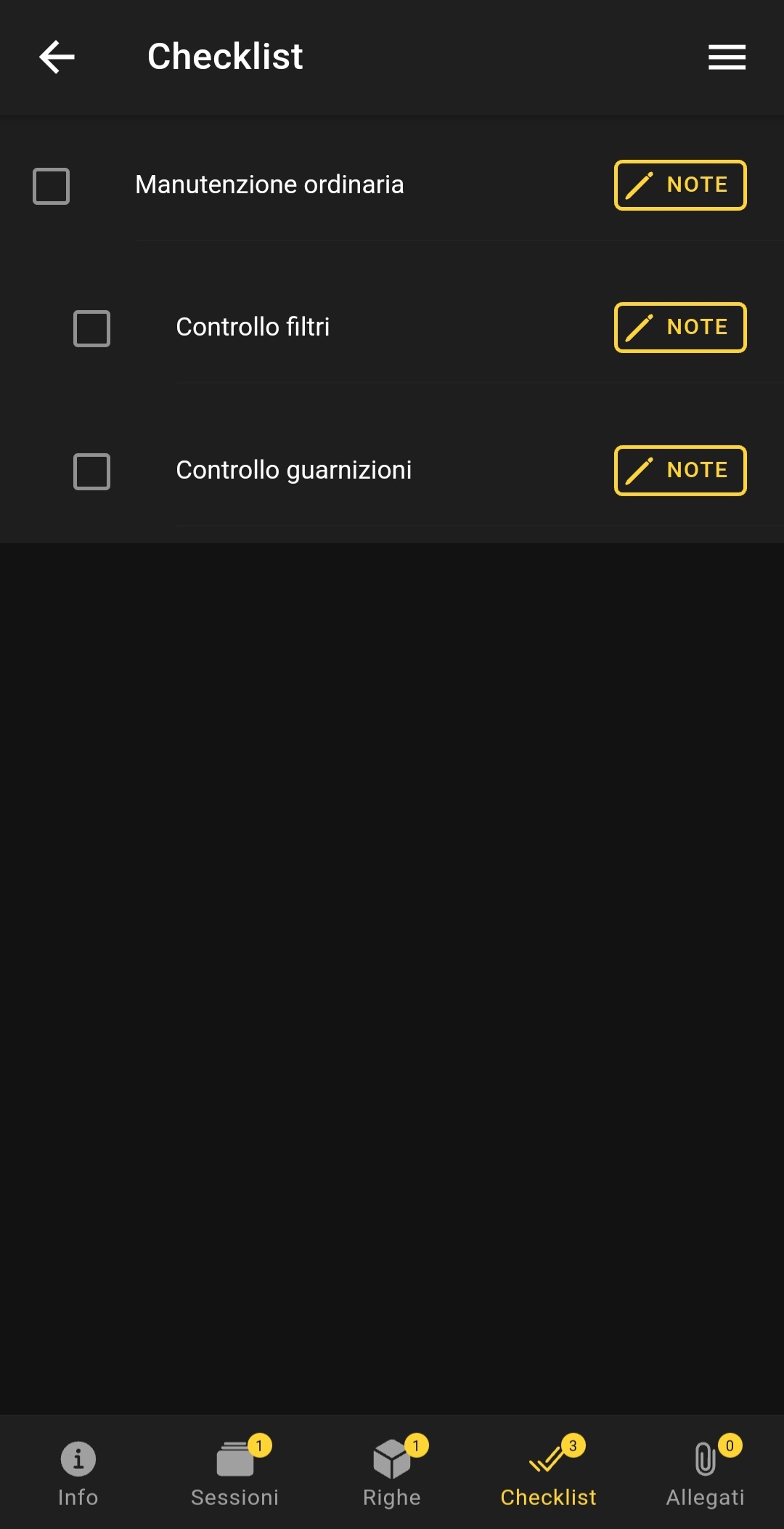 Cliccando su Checklist è possibile visualizzare le checklist collegate all'intervento: