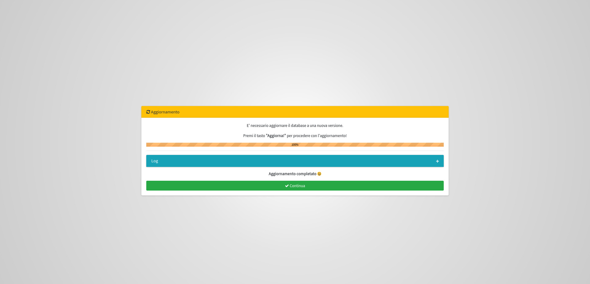 Al termine dell'aggiornamento si presenterà la seguente schermata.